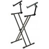 Soporte para 2 teclados tipo X patas dobles | regulable en altura en 9 posiciones, 55,2 a 94,3cm | Profundidad de teclado soportada 35.7cm | Soporta hasta 81 Kg